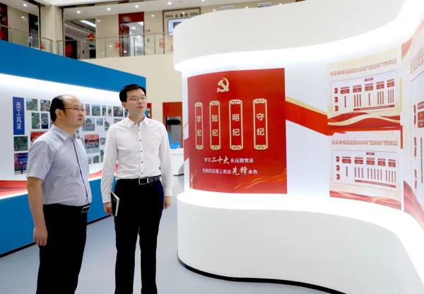 座談會前,張桂軍一行參觀了對外經貿“五亮先鋒”黨建與業務融合發展實踐展廳。