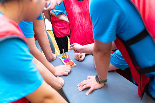 三根立柱,幾顆彩色圓盤,便組成了漢諾塔,初看簡單,實則蘊含著深刻的邏輯性與策略性。當益智游戲碰撞上團隊競技協作,傳統元素得到了新的詮釋,生發出絢爛的思維火花。大家在相互啟發中共同尋找最優解,在行動復盤中體驗團隊合作的力量。